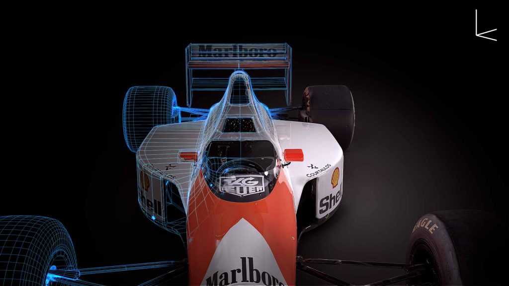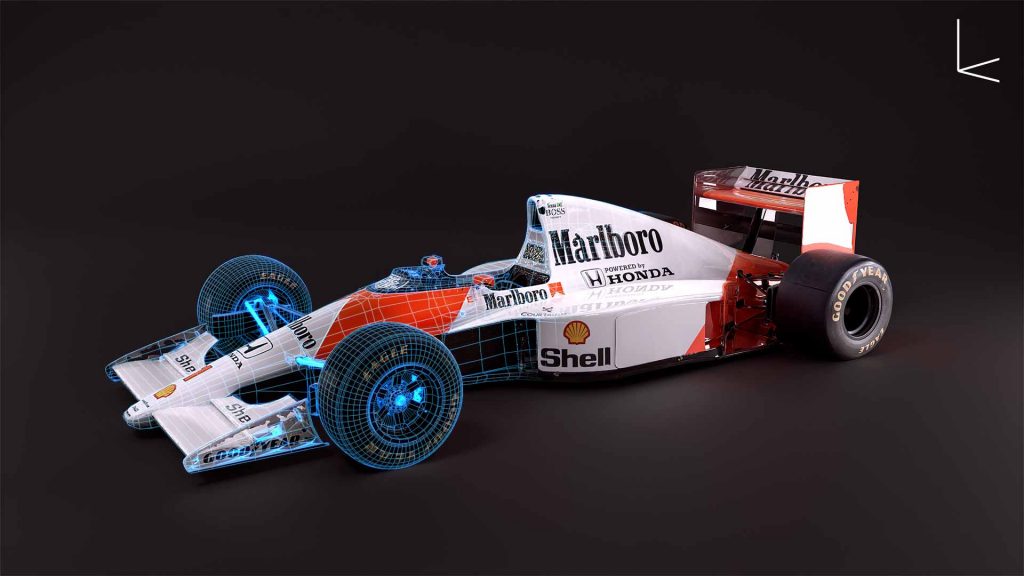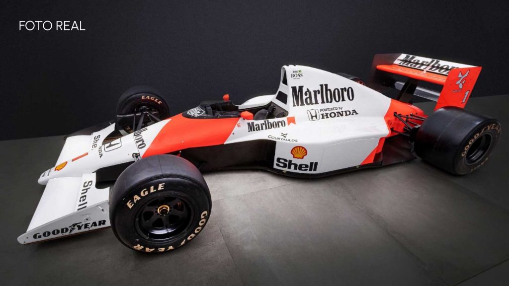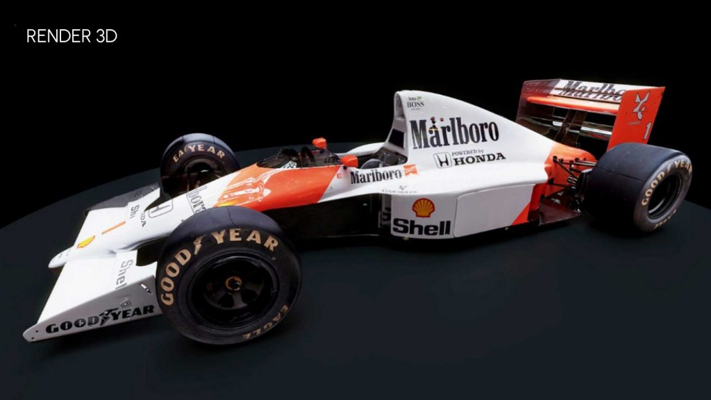 Se trata de una recreación en 3D del mítico MP4 del piloto 3 veces campeón del mundo Ayrton Senna.